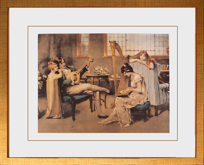 Γκραβούρα έγχρωμη σε ξύλινη χρυσή κορνίζα με μπεζ πασπαρτού & τζάμι εξωτ.διαστάσεις 38,2 Χ 31,1 cm πρόταση για επαγγελματικό δώρο