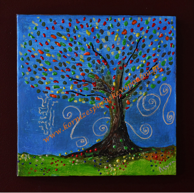 Ζωγραφική σε καμβά κορνιζαρισμένη πάνω σε καφέ μπορντώ κορνίζα πλακέ ,εξωτ.διαστάσεις 32,2 X 32,2 cm μοναδικό έργο και ένας πρωτότυπος τρόπος για να διακοσμήσετε το χώρο σας