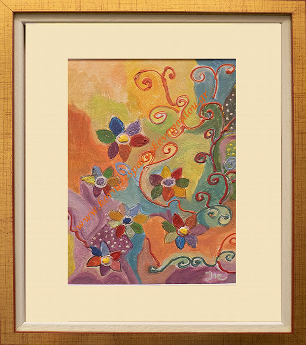 Ζωγραφική σε ακρυλικά χρώματα διπλή ξύλινη χρυσή κορνίζα με μπεζ πατούρα & πασπαρτού, εξωτ.διάσταση 38,4 X 31,2 cm μια μοναδική πρόταση