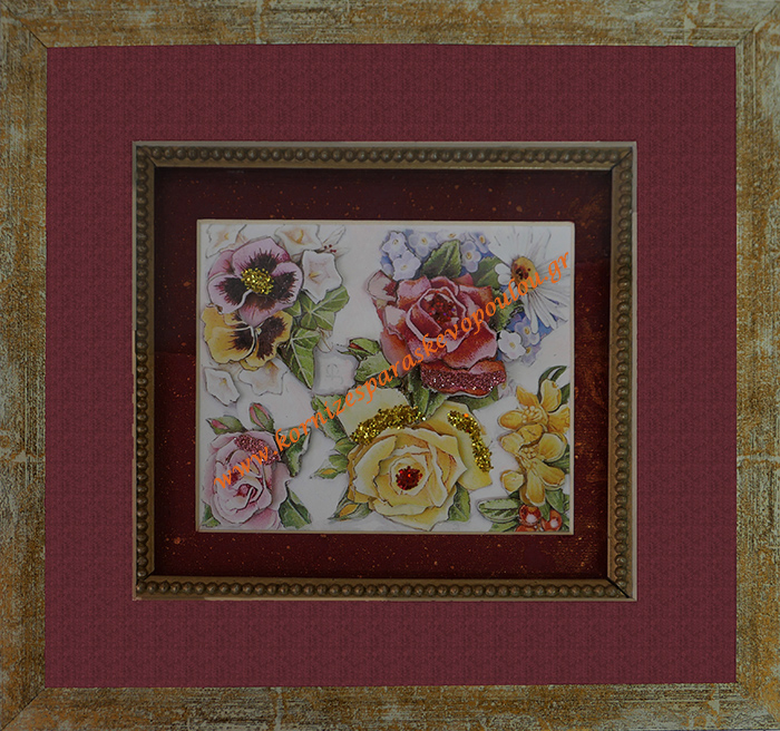 Ντεκουπάζ σε χρυσοπράσινη ξύλινη κορνίζα με πασπαρτού & τζάμι