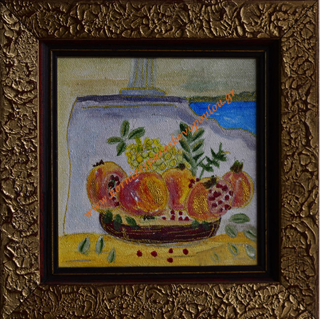 Ζωγραφική με ακρυλικά & μολύβι σε σκαλιστή ξύλινη χρυσή κορνίζα & τζάμι