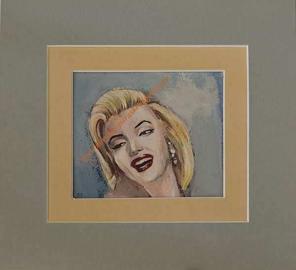 Σχέδιο Marilyn ζωγραφική με μεικτή τεχνική & διπλό πασπαρτού, εξωτ.διάσταση 22 Χ 20,5 cm, διακοσμήστε το χώρο σας με τη φαντασία & την αισθητική σας